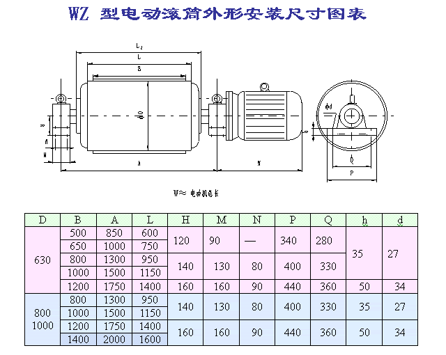 WZ外裝式擺線電動滾筒系列參數(shù)表: