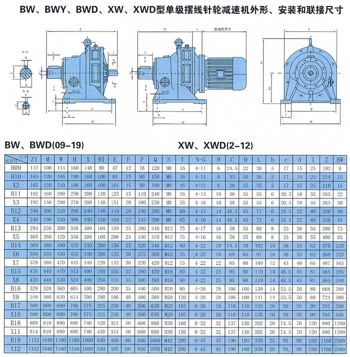 BW、BWY、BWD、XW、XWD型單級(jí)擺線針輪減速機(jī)
