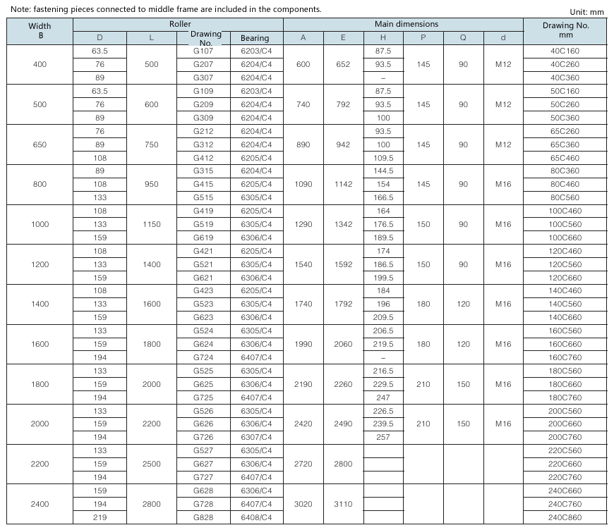 • 3.12.1 Single-roller upper parallel idler