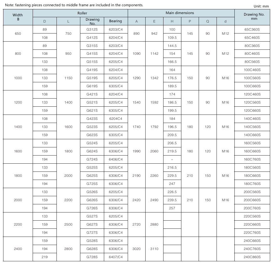 Requirement for drum surface: drawing No. with “G” as postfix refers to smooth face drum; drawing No. without “G” as postfix refers to rubber face drum.